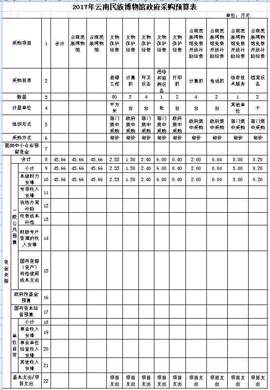 2017年雲南民(mín)族博物(wù)館政府采購(gòu)預算表